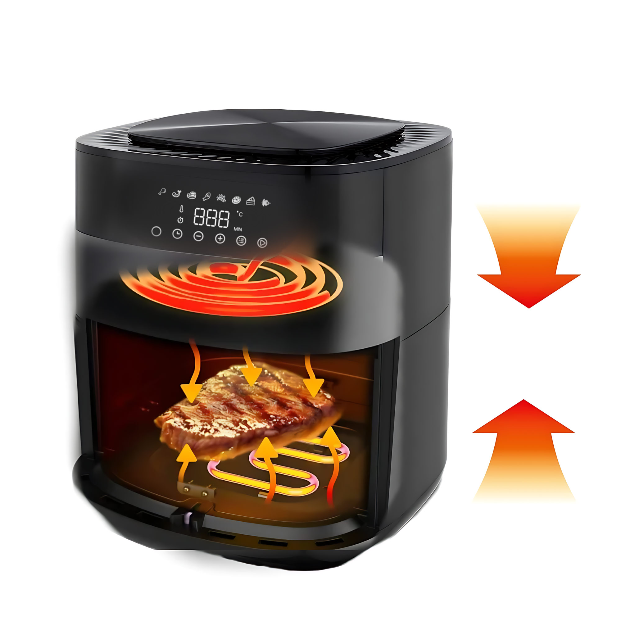 این سرخ‌کن دارای قابلیت تنظیم دما بوده و شما می‌توانید متناسب با نوع مواد غذایی و زمان پخت، دمای دستگاه را به‌صورت دستی بین ۸۰ تا ۲۰۰ درجه سانتی‌گراد تنظیم کنید. همچنین، این مدل دارای ۸ برنامه‌ی پخت پیش‌فرض است که از جمله می‌توان به برنامه‌های مخصوص سیب‌زمینی سرخ‌شده، ماهی، استیک و کباب اشاره کرد.