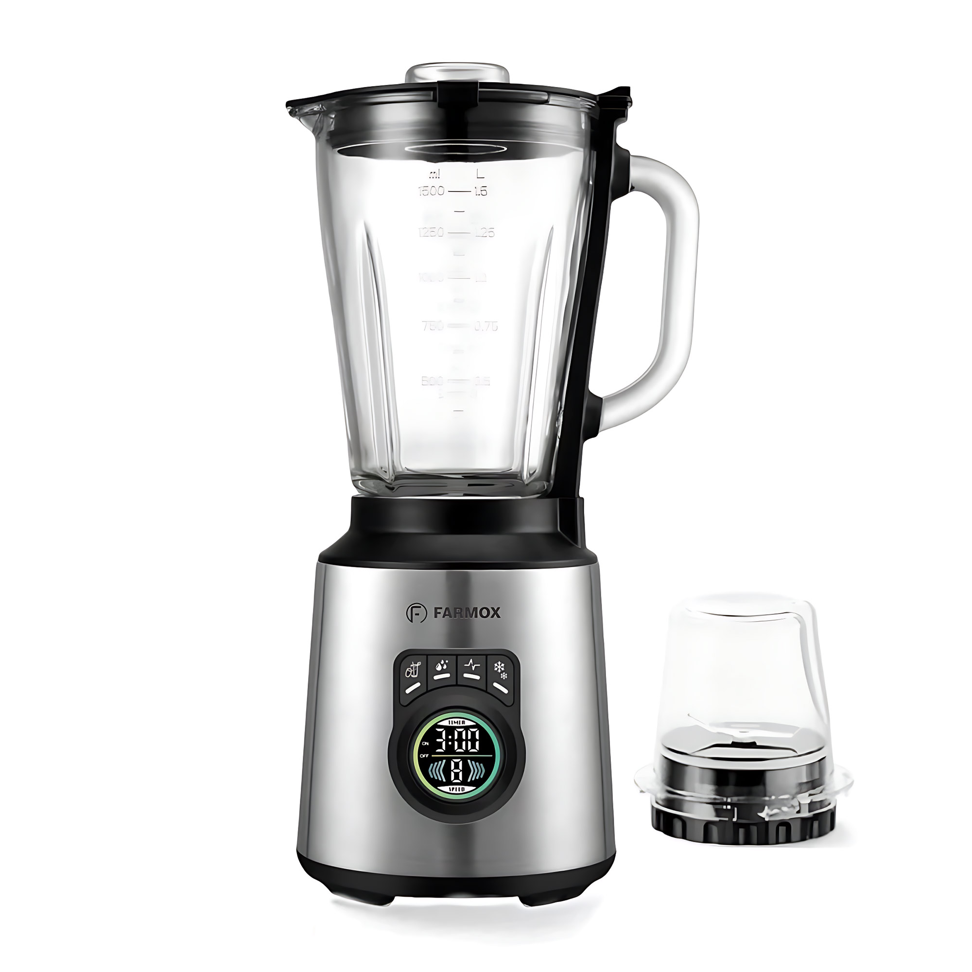 With 800 watts of power, the Farmox FX 3116 is an efficient and reliable assistant in any kitchen. This dual-function appliance can be used both as a blender and a chopper. The blender jar is made of high-quality glass, and the motor is fully copper. This model is also equipped with a digital display and has a stainless-steel body.